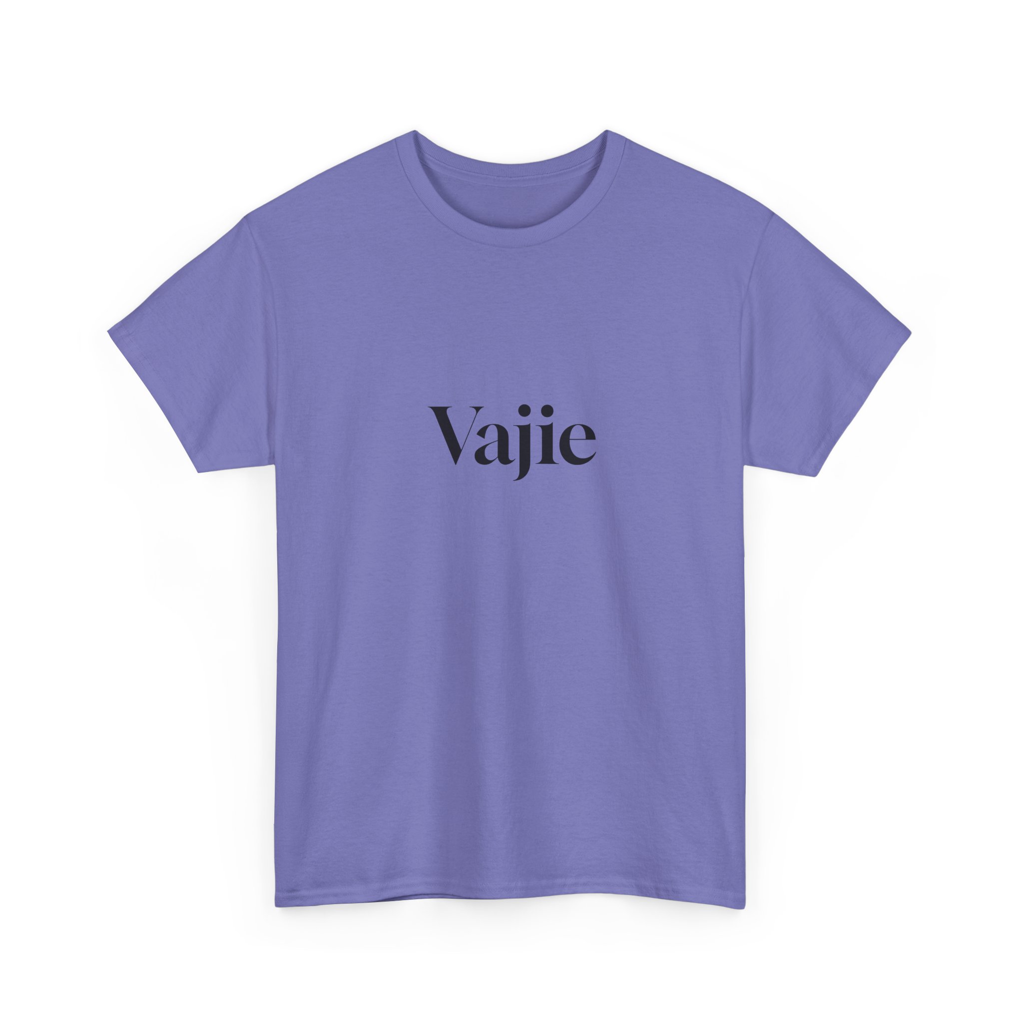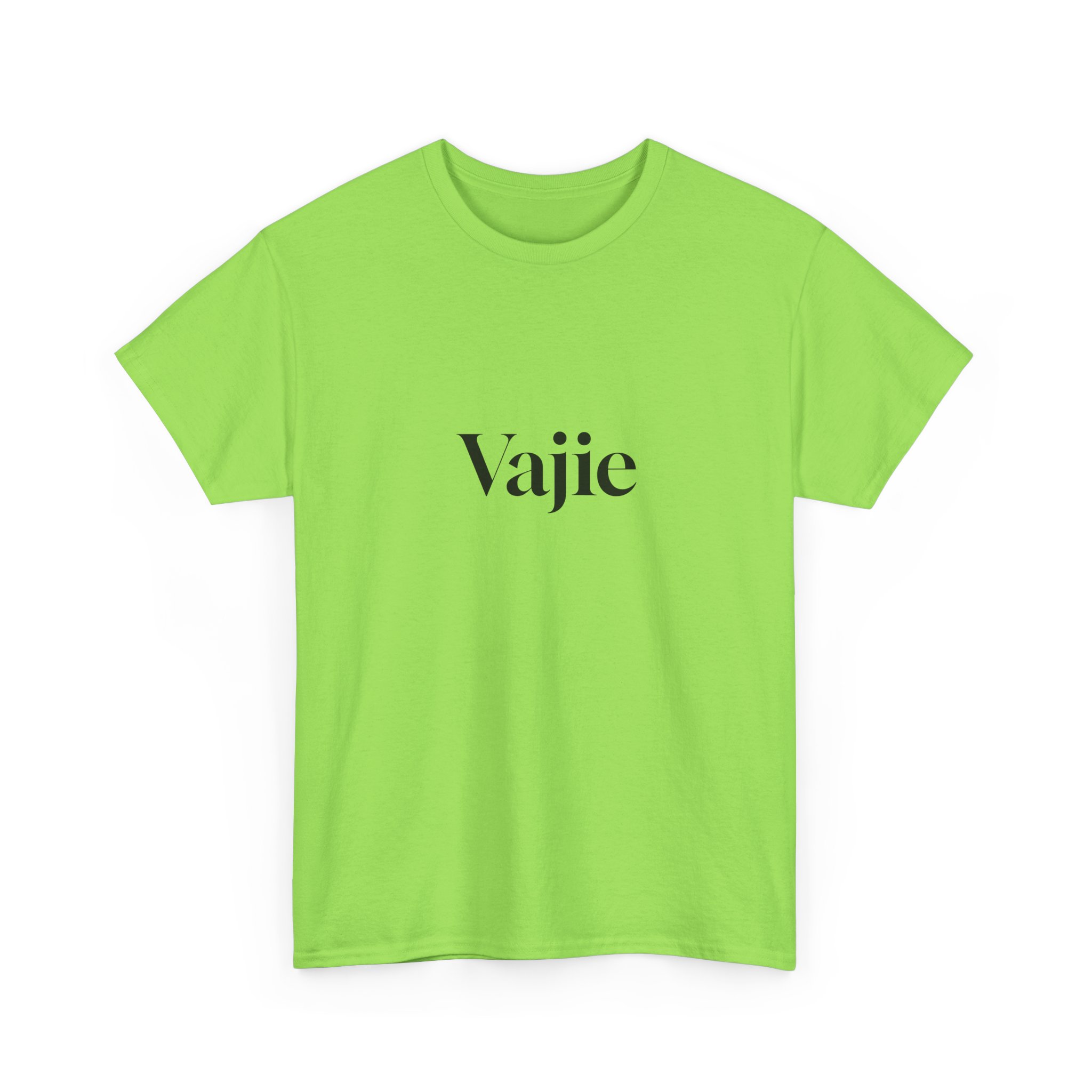 Introducing our Unisex Heavy Cotton Tee,  check out our seasonal colors grey, yellow, military – forest and neon green, sapphire and violet with Vajie print in front and the V logo on the back. Comfortable cotton t-shirt for her or him, unisex comfort enjoy this with friends as a gift – baby showers, birthday gifts. Browse our selections of Vajie panties for her as well – front and back printed logos.